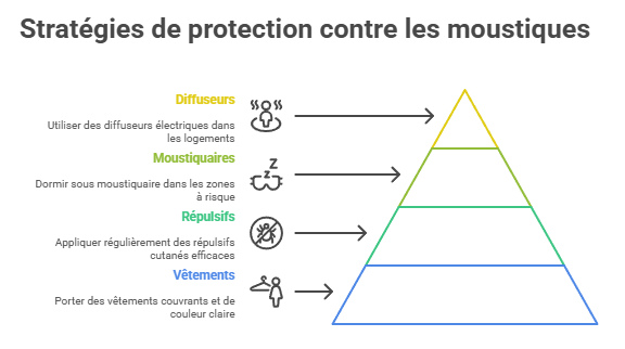 Pour se protéger efficacement contre les moustiques, nous recommandons ces mesures que nous appliquons systématiquement :
