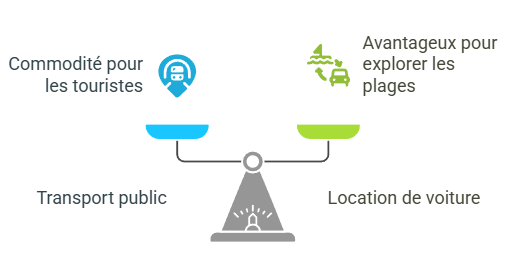 Concernant les transports, la ville dispose d’un réseau de bus, métros et taxis bien développé. Les services de covoiturage sont également très populaires et constituent souvent l’option la plus pratique pour les touristes. Nous avons trouvé que la location de voiture était particulièrement avantageuse pour analyser les plages environnantes.